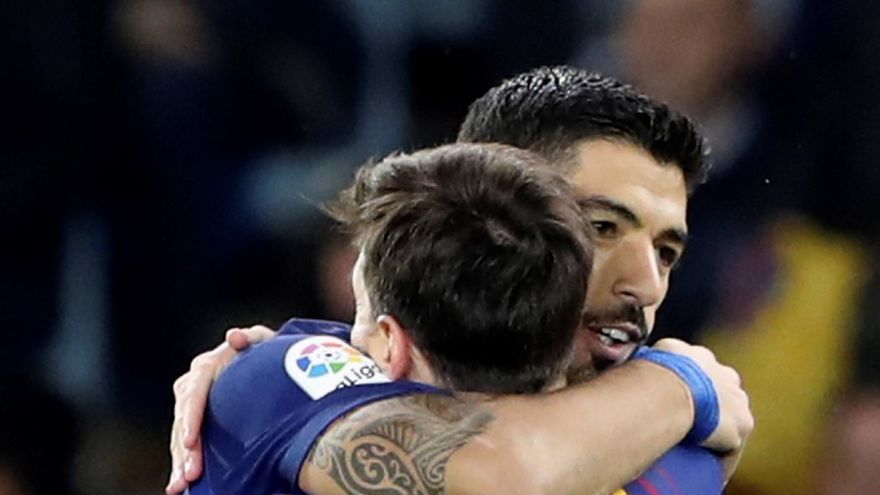 El argentino Lionel Messi, autor este domingo de un gol en el triunfo 4-2 del Barcelona ante la Real Sociedad, y el uruguayo Luis Suárez, que logró un doblete, alcanzaron respectivamente los 17 y los 13 tantos, al frente de la tabla de goleadores del campeonato español.