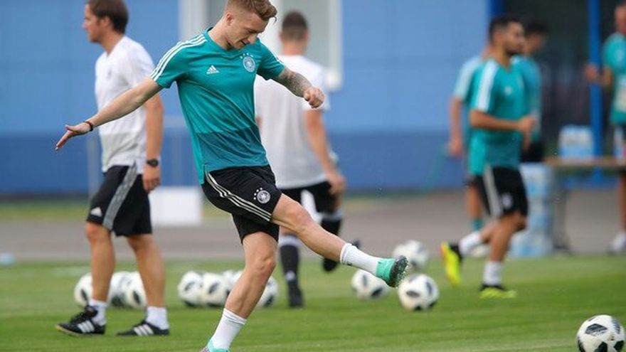 Tocado en un pie, Marco Reus no participó este martes por la mañana en el primer entrenamiento de Alemania antes del amistoso del jueves contra Rusia, mientras que Julian Draxler se ausentó por el fallecimiento de un familiar.