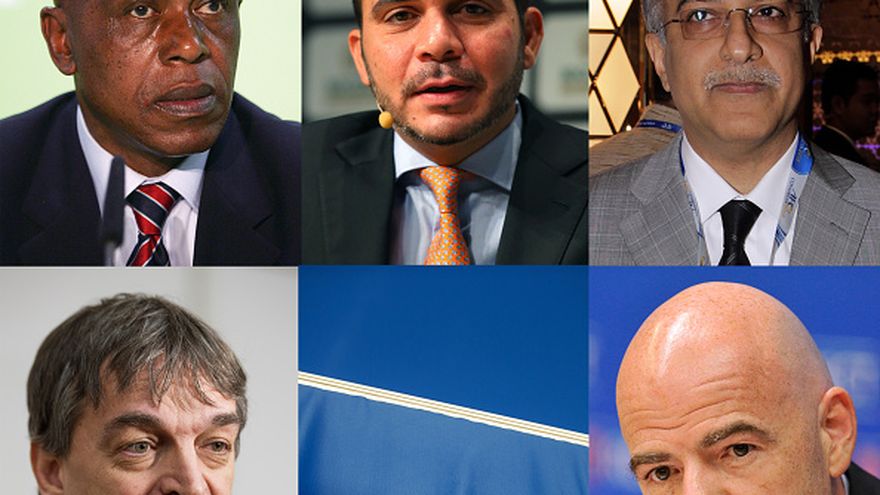 El secretario general de la UEFA, Gianni Infantino, el jeque de Bahrein Salman Bin Ebraim al Khalifa, presidente de la Confederación Asiática desde 2013, Jerome Champagne, exsecretario general adjunto de FIFA donde trabajó entre 1999 y 2010, el sudafricano Tokyo Sexwale, asesor de FIFA contra el racismo, y príncipe Ali Bin Al Hussein, presidente de la federación de Jordania y único rival de Blatter en las elecciones del pasado mayo.