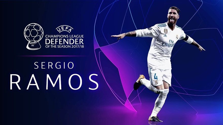 El capitán del Real Madrid, Sergio Ramos, volvió a recoger este jueves, igual que el año pasado, el premio de la UEFA como mejor defensa de la última temporada tras aventajar a sus compañeros de equipo Marcelo y Raphael Varane.