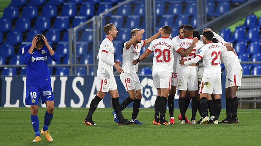 El Sevilla se impuso por la mínima en su visita al Getafe (15º) y se acerca a la zona de clasificación para la próxima Liga de Campeones, este sábado en la 13ª jornada del campeonato español.