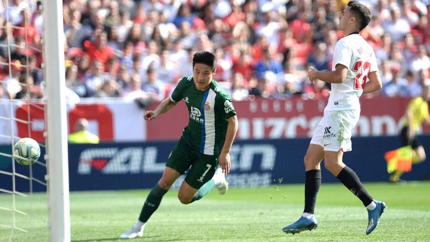 El cuadro blanquiazul se puso por delante en el marcador en la reanudación gracias a una diana de su delantero chino Wu Lei (50). Pero la remontada no sobrevivió hasta el pitido final debido al hermoso gol del empate 2-2 que consiguió el atacante Suso (80), incorporación sevillista en el mercado invernal, aprovechando la expulsión por doble tarjeta amarilla de Víctor Sánchez (69).