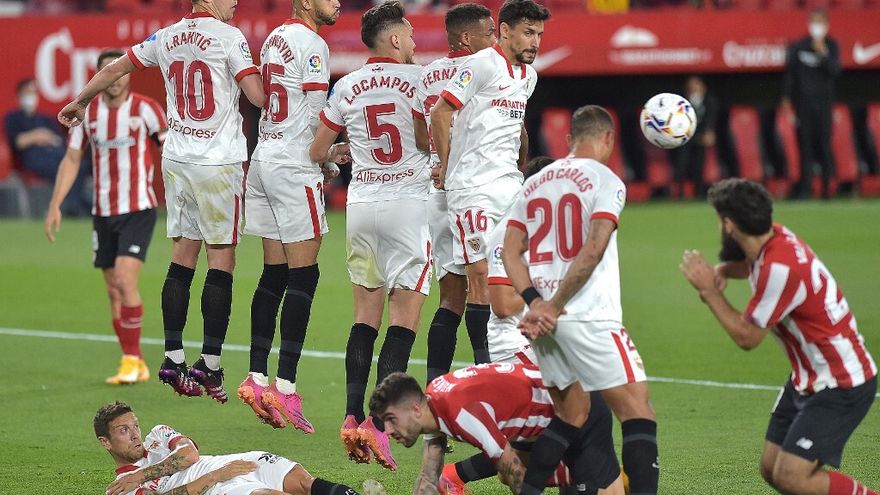 La primera parte fue de claro dominio local (72% de posesión), pero el Sevilla no acertó a convertir ninguna de las claras ocasiones que tuvo, entre ellas las del argentino Lucas Ocampos (8), el croata Ivan Rakitic (20) o el marroquí Yousseff En-Nesyri (24 y 39).