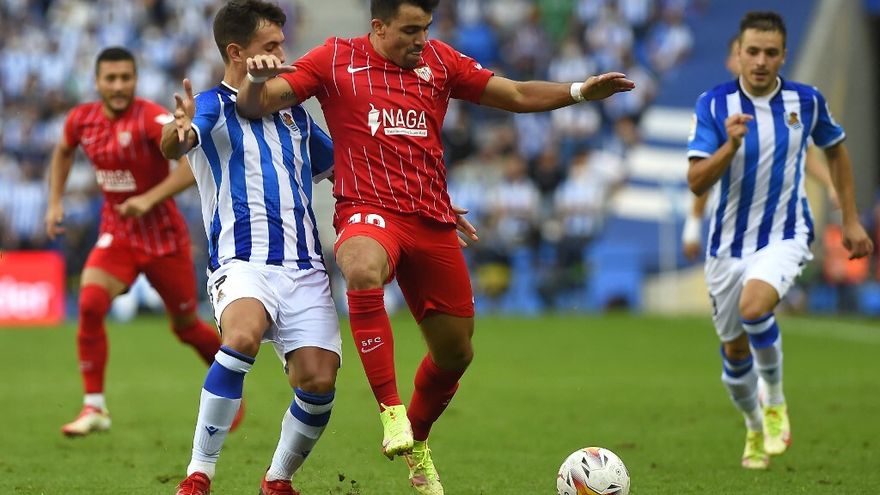El Sevilla (6º) salvó un empate sin goles en su visita a la Real Sociedad (4º), este domingo en la quinta jornada del campeonato español, con una gran actuación de su arquero, el marroquí Bono, que atajó un penal a Mikel Oyarzabal.