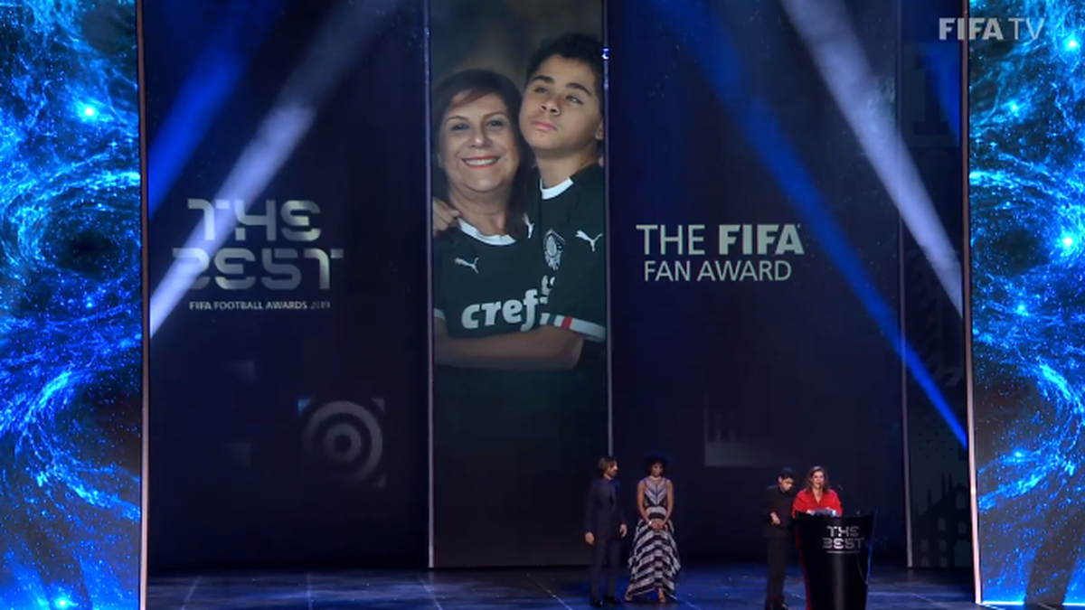 La brasileña Silvia Grecco recibió este lunes en el histórico Teatro La Scala de Milán el premio FIFA "The Best" a la mejor aficionada de la última temporada, por describir cada partido del Palmeiras a su hijo ciego.