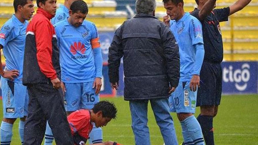LA PAZ, Bolivia (AP) -- Un partido de la liga profesional del fútbol boliviano acabó el sábado a los trece minutos debido a que el equipo visitante que había puesto sólo siete jugadores en la cancha, quedó con seis por la lesión de un defensor.