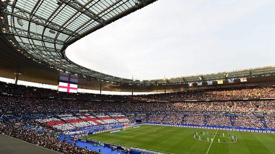 El 'Stade de France', vestido de los colores rojo, blanco y azul para el partido amistoso entre Francia e Inglaterra, rindió homenaje a las víctimas de los atentados de Londres y Mánchester, este martes antes del inicio del choque en París.