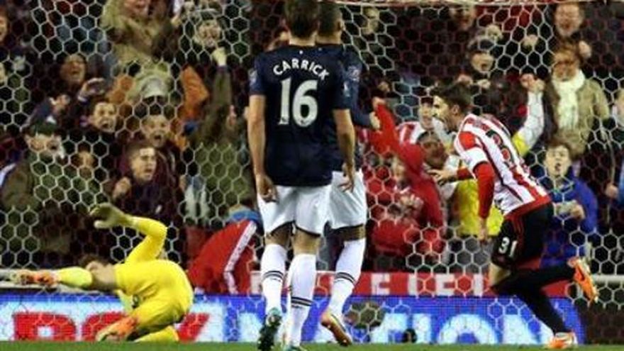 Manchester United sufrió el martes una tercera derrota consecutiva por 2-1, cuando Sunderland le venció en el partido de ida de las semifinales de la Copa de la Liga inglesa, acentuando las tribulaciones del técnico David Moyes. El italiano Fabio Borini anotó de penal a los 65 minutos para darle al local Sunderland la ventaja antes de la visita a Old Trafford dentro de dos semanas. Los dirigidos por el técnico uruguayo Gustavo Poyet se adelantaron poco antes del descanso cuando Ryan Giggs, el veterano volante galés del United anidó el balón en sus propias redes ante el asedio de Phil Bardsley. Nemanja Vidic anotó de cabeza el empate por el United a los 52 minutos, pero los visitantes recibieron la bofetada definitiva cuando Tom Cleverley le cometió falta en el área a Adam Johnson, cediendo el penal. Y Moyes emuló a su antecesor Alex Ferguson, al achacar la nueva derrota al desempeño de los árbitros. "Siento que hemos tenido que pelear contra los rivales y los árbitros", dijo Moyes. "Tal vez debo entender que esto es lo que pasa en el Man United. Pero aun si lo hacemos, la verdad es que no nos están pitando como se debe en este momento". El tanto de Borini prolongó un aciago inicio del año por parte del United, que ha hilvanado tres tropiezos consecutivos por el mismo marcador. El ManU, que se coronó en la Liga Premier con una diferencia de 11 puntos la campaña anterior, está ahora precisamente 11 unidades abajo del líder Arsenal, tras caer ante el Tottenham en el día en que se celebraba el Año Nuevo. Y los "Red Devils" fueron eliminados en la Copa FA el domingo, cuando el Swansea se impuso en un duelo de la tercera ronda en Old Trafford. Los hinchas "saben que pasamos por un momento difícil", dijo Moyes, quien esta temporada asumió las riendas tras el retiro del legendario Ferguson. "probablemente no habían visto algo tan malo como esto durante mucho tiempo, pero estoy determinado a corregirlo. Seguro que lo lograremos". No todo está perdido para Moyes, quien ha cumplido la mitad de su primera campaña desde que tomó el puesto por el retiro de Ferguson. Su equipo sigue con vida en la Liga de Campeones de Europa y enfrenta a Olympiacos en los octavos de final el mes próximo. Ferguson, de 72 años, sigue proyectando una sombra sobre su sucesor. Observó el encuentro en el Stadium of Light en su carácter de directivo del United, en otra noche adversa para el club al que dirigió durante 26 años, con una copiosa cosecha de trofeos. Ante las lesiones de Robin van Persie y Wayne Rooney, Moyes confió el ataque a Danny Welbeck. Sin embargo, el delantero fue anulado por una defensiva que incluyó a dos ex jugadores del United, Wes Brown y John O"Shea. El duelo de ida de la otra semifinal entre Manchester City y West Ham se jugará el miércoles.