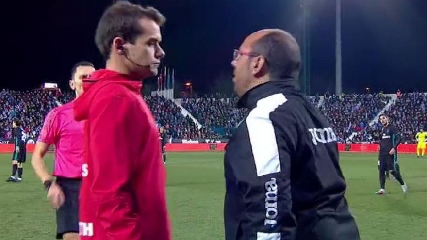 El colegiado reflejó después en el acta del encuentro que el utillero del Leganés fue expulsado "por protestar desde el banquillo gritando con los brazos en alto, habiendo sido advertido previamente".