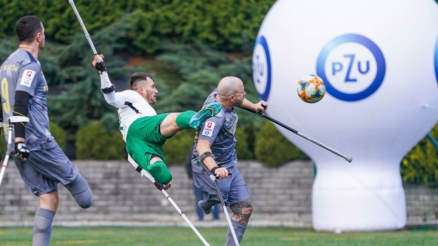 Fue en 2019 cuando el deporte regresó a la vida de Oleksy, ahora como jugador de campo en el fútbol adaptado luego de haber sido guardameta antes de su accidente.