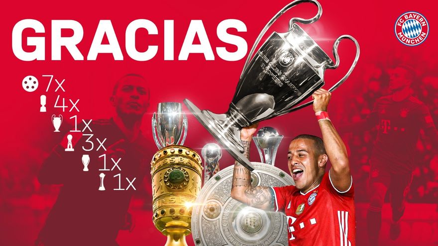 Thiago, de 29 años, llegó al Bayern procedente del Barcelona en 2013, y fue pieza clave en la última Liga de Campeones, ganada por su club.