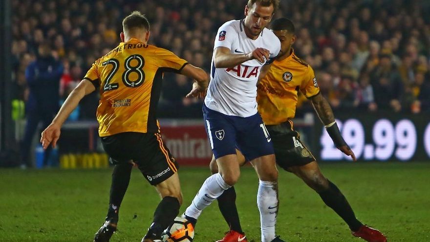 El delantero Padraig Amond adelantó al equipo local minutos antes del descanso (38) y la afición del Newport County soñó con la gesta hasta que Harry Kane salvó a su equipo de la eliminación a falta de ocho minutos para el final.