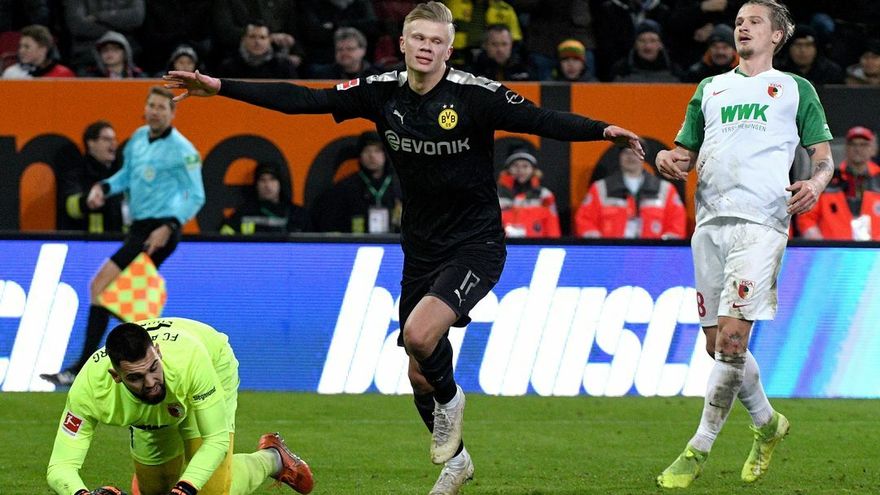 Haaland había empezado como suplente y entró al campo en el minuto 56, cuando el Dortmund perdía 3-1. El Augsburgo se había adelantado con un doblete de Florian Niederlechner (34, 55) y un tanto de Marco Richter (46).