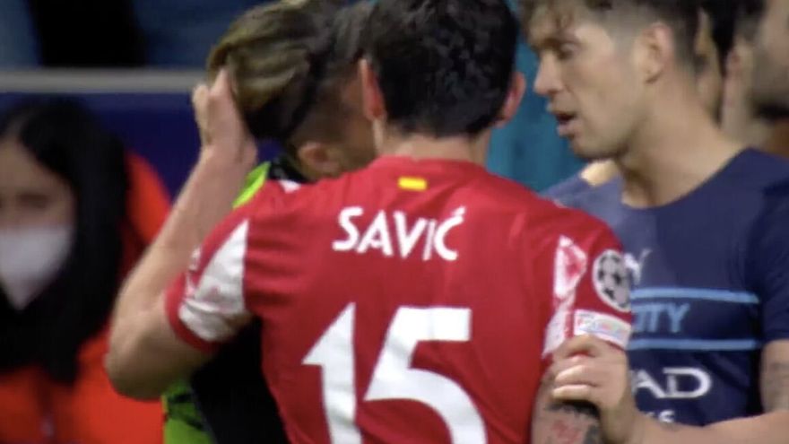 En medio del caos que se formó en la cancha, Savic tuvo un breve confrontamiento con Jack Grealish, que fue captada por la cámara.