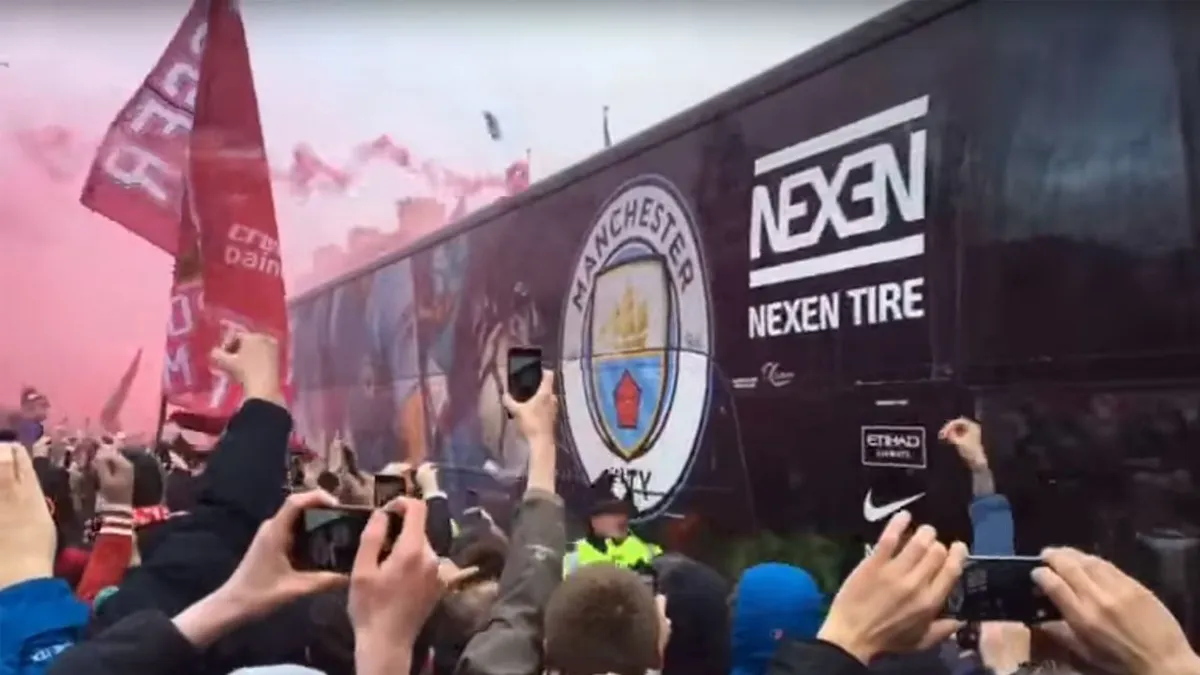 El autobús que transportaba a los jugadores del City fue alcanzado por botellas y latas a su llegada al estadio una hora antes del inicio del partido, ganado finalmente 3-0 por el Liverpool.