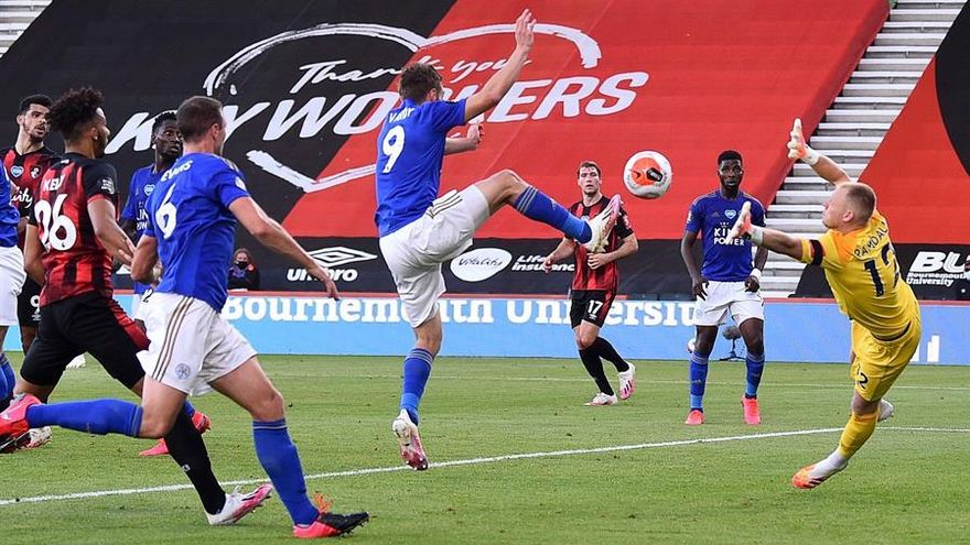 El delantero Jamie Vardy, autor del gol del Leicester en la derrota este domingo contra el Bournemouth (4-1), se escapa al frente de la clasificación de goleadores de la Premier League, cuando quedan tres jornadas para el final del campeonato inglés.