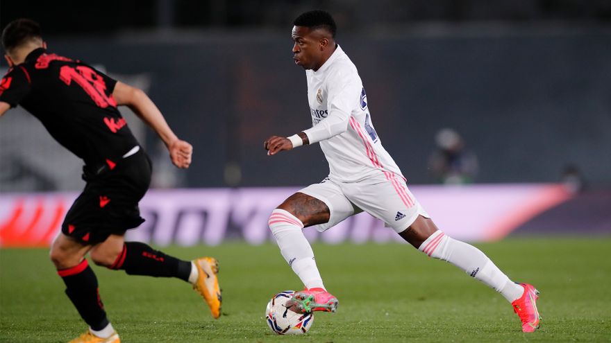 Un gol del brasileño Vinicius Jr a un minuto para el final permitió al Real Madrid (3º) rescatar un punto ante la Real Sociedad (5º) en el partido que cerraba la 25ª jornada del campeonato español.