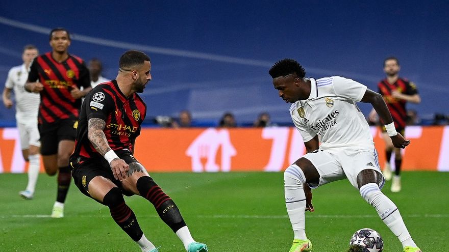 El Real Madrid sufría sostenido en la buena actuación de su portero, pero cuando peor estaban los locales, Vinicius dio un primer aviso llegando hasta la línea de fondo para dejar un centro que sacó Ruben Dias cuando Benzema ya se disponía a rematar (25).