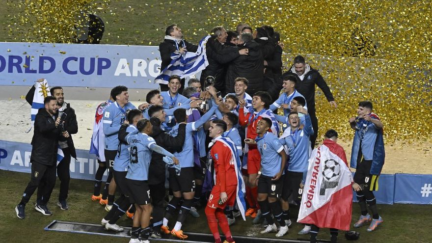 El silbido que dio fin al partido desató la fiesta de plantel en la cancha y en las tribunas, donde la hinchada uruguaya volvió a festejar un título doce años después de gritar campeón con la selección absoluta en la Copa América Argentina-2011.