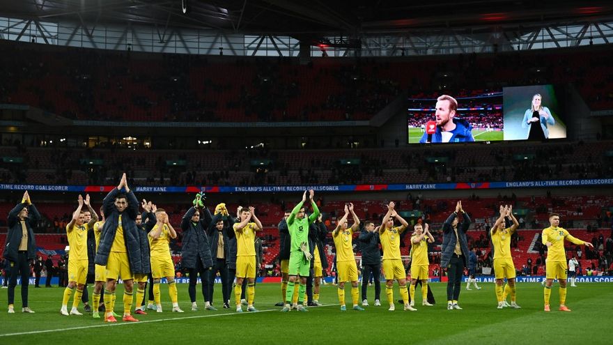 En un templo como Wembley, el partido fue mucho más allá del fútbol. El estadio inglés se tiñó de banderas ucranianas, con más de 1.000 entradas distribuidas entre los exiliados del país invadido por Rusia y las familias que los han acogido en Inglaterra.