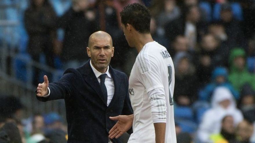 Zinedine Zidane (de frente) y Raphäel Varane (de lado) / AFP