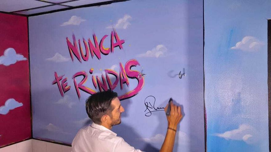 El pasillo cuenta con fotografías del ex portero de la selección nacional, su firma y el mensaje de "nunca te rindas", que se hizo famoso con la publicación de su libro.