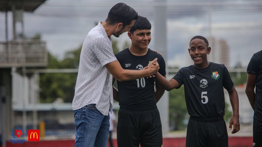 Jaime Penedo junto a futbolistas juveniles / Foto: Fepafut