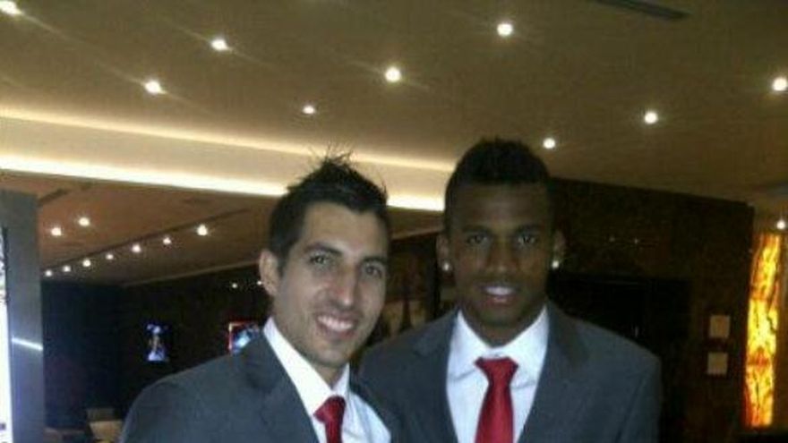 Los porteros de la Selección de Fútbol de Panamá, Luis Mejía y Jaime Penedo, se tomaron una fotografía luciendo los trajes con los que los miembros del elenco panameño viajarán hacia San Pedro Sula, Honduras. Mejía, Penedo y sus compañeros salieron de su lugar de concentración, el Hotel El Panamá, para dirigirse hacia el Aeropuerto Internacional de Tocumen desde donde viajarán hacia el territori hondureño a las 6:30 p.m.
