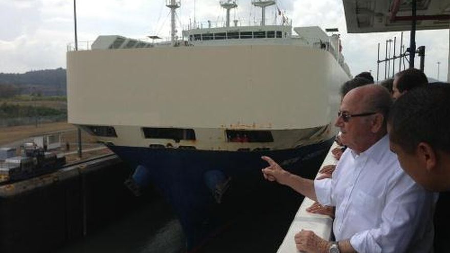 El presidente de la FIFA (Federación Internacional de Fútbol Asociación), Joseph Blatter, realiza una visita a las instalaciones del Canal de Panamá para conocer de cerca el funcionamiento de la vía interocéanica. Esa visita forma parte de la agenda de actividades de Blatter en Panamá, y fue posterior a su presencia en la inauguración de la Casa del Fútbol Panameño. FOTO: Canal de Panamá (Twitter)