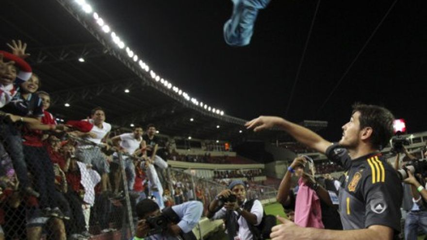 Una Selección de España concisa en sus declaraciones, pero que, por momentos, dio muestras de aprecio a algunos fanáticos fue la que llegó a Panamá y deslumbró con su juego contundente. Luego de la victoria de 5 goles a 1, en el partido amistoso que jugó ante su similar de Panamá en el estadio Rommel Fernández, el arquero Iker Casillas lanzó camisetas a los fanáticos en medio de gritos, especialmente de damas, que intentaban llamar la atencióin del que es considerado el mejor portero del mundo. Mientras tanto, Sergio Ramos expresó que el resultado se debio a la eficacia del ataque español. "Supimos aprovechar las oportunidades que se nos presentaron ante Panamá", declaró el defensor del Real Madrid. El planteamiento de Ramos fue compartido por el técnico Vicente Del Bosque. "Hicimos lo mejor y afortunadamente nos salieron las cosas bien", indicó. Por otra parte, los jugadores Juan Mata y Andrés Iniesta utilizaron sus cuentas de Twitter para expresar su sentir tras una visita de un par de días en Panamá. "Volvemos para casita en breve, ¡¡gracias a la gente de Panamá por su cariño!! Jugar en el estadio Rommel Fernandez ha sido muy bonito", escribió Iniesta. "¡Buen partido en Panamá! Siempre es bonito jugar con la Selección. ¡Abrazos!", expresó Mata. La delegación española salió de Panamá en horas de la noche. FOTO: 10 Deportivo (Twitter)