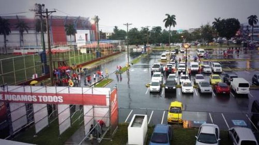 En estos momentos llueve en la ciudad de Panamá y eso no ha sido impedimento para que los fanáticos ingresen al estadio Rommel Fernández para ver el partido de eliminatoria al Mundial Brasil 2014 entre las selecciones de Panamá y Jamaica. Algunos de los fanáticos han llevado paraguas para protegerse. Sin embargo han tenido que dejarlos a la entrada del estadio por seguridad. Se estima que el juego inicie a las 9:00 p.m.
