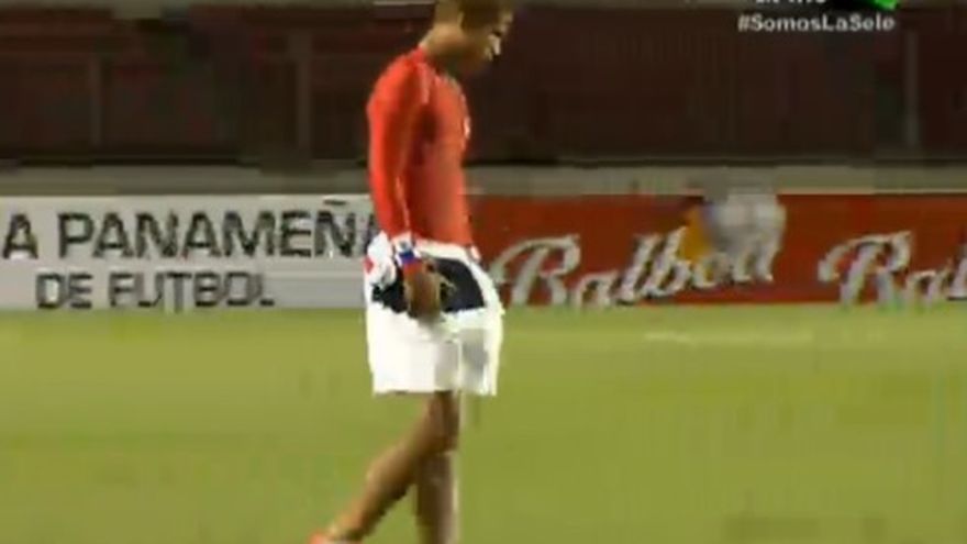 Algunos jugadores de la Selección de Fútbol de Panamá camina la cancha del estadio Rommel Fernández antes del partido que tendrá ante Estados Unidos. Roberto Chen, Aníbal Godoy, Jairo Jiménez, Felipe Baloy y Carlos Rodríguez, son algunos de los jugadores que recorren el engramado del estadio. Por otra parte de la cancha, personal de la delegación de Estados Unidos coloca los conos para que los jugadores inicien sus ejercicios de calentamiento.