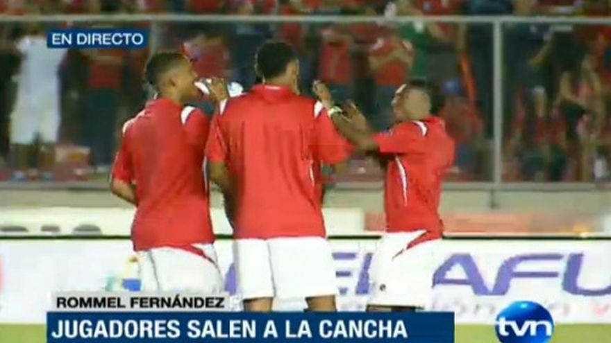 Algunos jugadores panameños pisan la grama del estadio Rommel Fernández a cerca de una hora y media de que inicie el partido eliminatorio entre las selecciones de Panamá y México. El público anima a los jugadores y les muestran su cariño antes de ese importante encuentro del Hexagonal de Concacaf a la Copa del Mundo Brasil 2014.