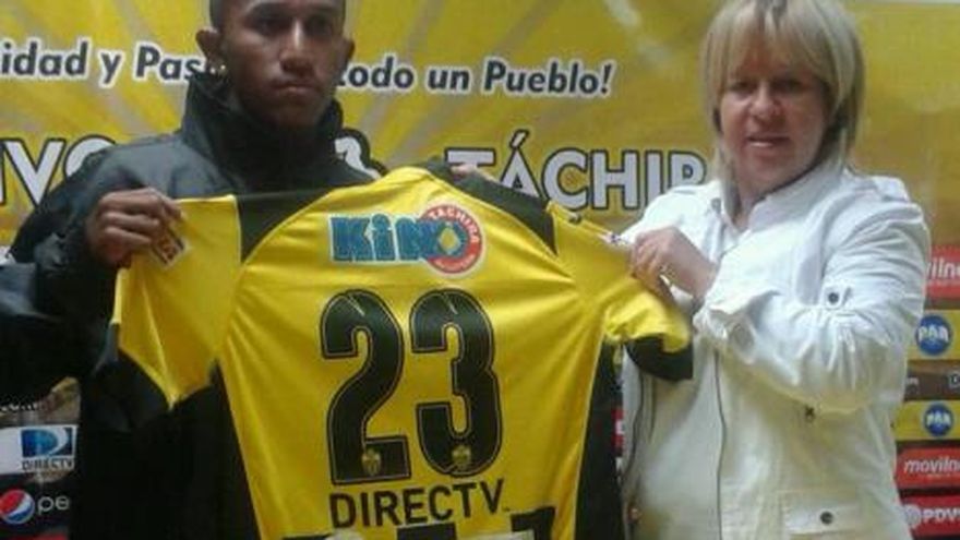 El volante panameño Marcos Sánchez fue presentado como nuevo refuerzo del Deportivo Táchira de la primera división del fútbol profesional de Venezuela. Sánchez, quien utilizará el número 23 en su camiseta, ya entrenó con sus nuevos compañeros. Durante su presentación, el futbolista estuvo acompañado por la presidenta del equipo aurinegro Juana Suárez. El exjugador del Tauro FC en la Liga Panameña de Fútbol (LPF) y que también integró la Selección de Panamá, firmó un contrato de tres años y medio que lo vincula a un club dentro de una liga donde la presencia de jugadores panameños es cada vez más notoria. Edwin Aguilar y Rolando Escobar, en el Deportivo Anzoátegui, Luis Ovalle y Ricardo Clarke, en el Zamora FC, son los otros futbolistas istmeños que compiten en esa liga. FOTO: Carlos Luis Roa