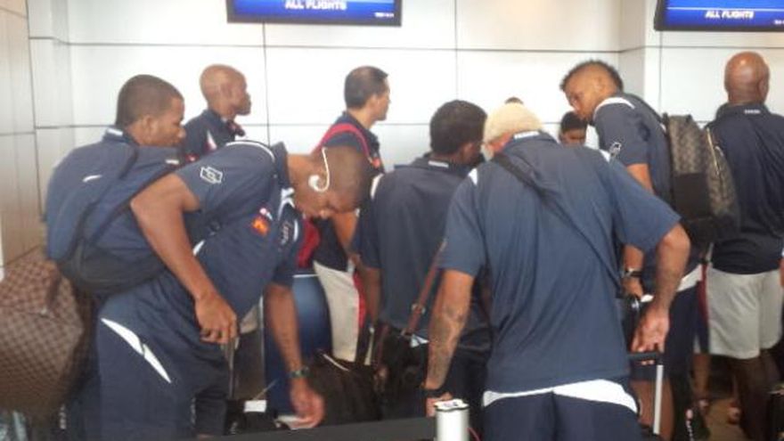 Dispuestos a asegurar un puesto en la Hexagonal eliminatoria a la Copa del Mundo Brasil 2014, llegaron hoy a la ciudad de La Habana los integrantes de la Selección de Fútbol de Panamá. Tanto jugadores como miembros del cuerpo técnico se apersonaron, en la tarde, a las instalaciones del Aeropuerto Internacional de Tocumen para abordar el avión que les llevó al sitio donde este martes jugarán ante su similar de Cuba en la última fecha del Grupo C de la tercera ronda clasificatoria de la CONCACAF al Mundial brasileño. "Tenemos que salir el martes a la cancha y buscar la clasificación", expresó el delantero Luis Tejada al periodista Jhonny Mosquera de TVMax. Esas palabras recogen el sentir general del equipo panameño. Eso lo ratificó el técnico Julio César Dely Valdés. "Debemos salir y demostrar porqué hemos sido los líderes de grupo, tal y como ha ocurrido en toda esta fase", indicó. Panamá tiene 10 puntos y encabeza el grupo que comparte con Cuba, Canadá y Honduras. Luego de empatar a cero goles ante los hondureños, el pasado viernes 12 de octubre, el equipo panameño necesita sumar puntos, ya sea con una victoria o un empate, ante los cubanos para asegurar su clasificación. El partido entre istmeños e isleños se realizará este 16 de octubre en el estadio Pedro Marrero de La Habana a partir de las 3:00 p.m. (hora de Panamá). Simultáneamente jugarán, el estadio Olímpico de San Pedro Sula, las selecciones de Honduras y Canadá. FOTO: FEPAFUT