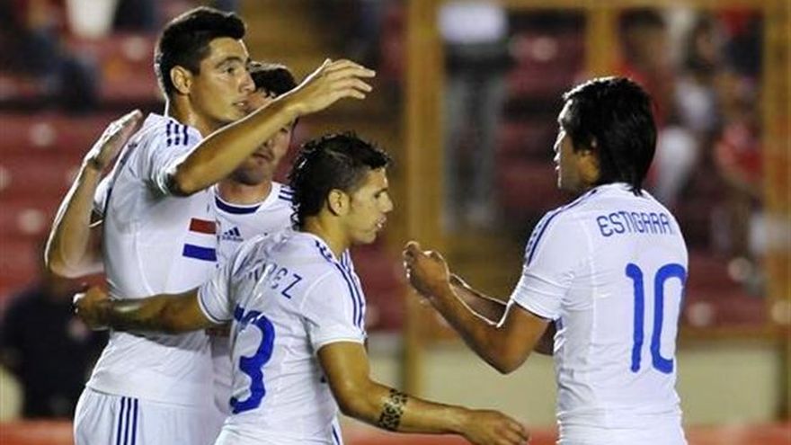 Paraguay derrotó 2-0 a Panamá el viernes con goles de Oscar Cardozo y Robin Ramírez en los primeros 10 minutos, en un choque de preparación para ambas selecciones con miras a las eliminatorias mundialistas. Cardozo abrió la cuenta de penal a los 7 minutos y Ramírez aumentó a los 10 minutos. El zaguero panameño Luis Moreno fue responsable en los dos tantos. En el primero al cometerle una falta en el área a Hernán Pérez, y luego al dejarse quitar una pelota de Ramírez, quien no perdonó y fusiló a Luis Mejía. "Fueron dos errores muy grandes y lo pagamos caro", dijo el técnico panameño Julio César Dely Valdés. Un zapatazo desde fuera del área de Gabriel Gómez que despejó el portero paraguayo Antony Silva fue la mejor ocasión del plantel panameño después de haber recibido la segunda anotación. Cardozo casi anota el tercero al ingresar con libertad por un costado a los 33 minutos. Su remate pegó en el palo. Las ocasiones de gol en ambos arcos fueron escasas en la segunda mitad, en la que el partido cayó en la monotonía y las jugadas intrascendentes. El público comenzó a abandonar el estadio Rommel Fernández pocos minutos antes del final del encuentro. Panamá tendrá el martes frente a Nicaragua su primer partido en el marco de las eliminatorias de la CONCACAF para el Mundial de Brasil del 2014. Paraguay se prepara para las eliminatorias sudamericanas, que arrancan en octubre. El equipo "guaraní" fue subcampeón en la Copa América recientemente disputada en Argentina.