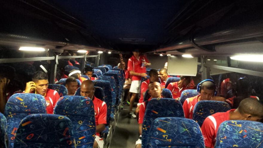 Mientras la Selección de Jamaica recorre la cancha del Estadio Nacional de Kingston en Independence Park, su similar de Panamá aborda el autobús que los llevará hacia el coliseo. Los integrantes de la selección panameña parten desde el Hotel Pegasus para dirigirse al estadio. FOTO: FEPAFUT