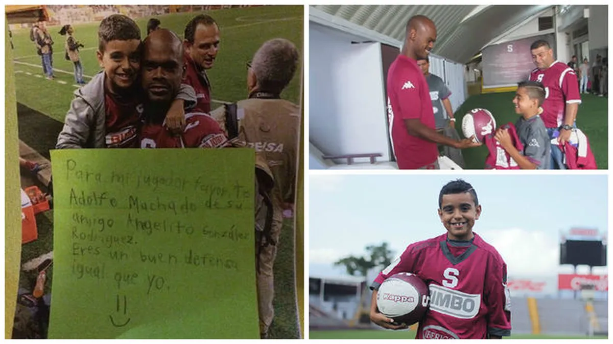 Angelo González es un niño saprissista de 9 años, llamado Angelito, que recordó al zaguero morado, Adolfo Machado, que ser capitán va más allá de dar la vida en la cancha partido a partido.