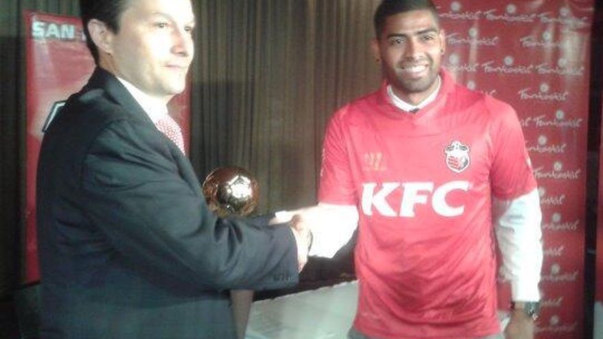 Contento de llegar a la Liga Panameña de Fútbol (LPF) y con el deseo de ser campeón, así se encuentra el volante Gabriel "Gavilán" Gómez quien fue presentado oficialmente como nuevo jugador del San Francisco de La Chorrera. "Agradecido por la oportunidad que me da el San Francisco", comentó el también jugador de la Selección de Fútbol de Panamá. "Vengo con mucha pasión, muchas ganas de buscar la estrella para el equipo." Gómez, quien utilizará, el número 28 con "los monjes" chorreranos, manifestó que el técnico Gary Stempel le prometió que le daría el título de campeón del certamen apertura como regalo, debido a que el jugador no ha tenido la oportunidad de conquistar una corona a nivel de clubes. "Nunca he sido campeón y ese es el regalo que me prometio Gary, todos nos regalaremos ese título", agregó el futbolista que recientemente estuvo con el Atlético Junior de Barranquilla en la Liga Postobón de Colombia. El jugador hará su debut el viernes 16 de agosto, en el estadio Agustín "Muquita" Sánchez, cuando el San Francisco juegue contra el Club Atlético Independiente de La Chorrera (CAI) en lo que será la primera versión del clásico chorrerano. El equipo que resulte ganador en el juego del viernes se llevará la Copa Agustín "Muquita" Sánchez. FOTO: FEPAFUT