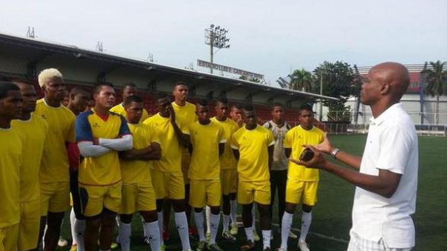 Julio César Dely Valdés tuvo hoy su primer contacto con los jugadores del Árabe Unido de Colón al participar en el entrenamiento que realizó el equipo en la cancha Luis Ernesto "Cascarita" Tapia en la Ciudad Deportiva Irving Saladino. Dely Valdés conversó con los jugadores y solo supervisó la práctica que estuvo dirigida por el asistente Alfonso De Mora. El extrenador de la selección de fútbol de Panamá fue contratado y presentado como nuevo director técnico del Árabe Unido por la directiva de ese elenco que espera mejorar tras un mal inicio en el Torneo Apertura 2014 de la Liga Panameña de Fútbol (LPF). El equipo de Colón solo tiene un punto en cinco partidos jugados esta campaña. FOTO: Karen Vargas (Twitter)