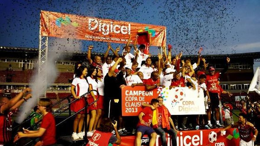 El Sporting San Miguelito se coronó campeón del Torneo Clausura 2013 de la Liga Panameña de Fútbol (LPF) al vencer en el partido final del certamen al San Francisco de La Chorrera, por 4 goles a 1. El equipo de San Miguelito dominó el partido desde el principio. Tan solo habían pasado cuatro minutos del pitazo inicial cuando Ricardo Clarke anotó el primer gol del partido. Cinco minutos más tarde, al minuto 8, Darwin Pinzón saca un remate potente de larga distancia para vencer al portero William Negrete y poner el tablero en 2 goles a 0, a favor del conjunto académico. A pesar de tener dos goles en contra, "los monjes" chorreranos buscaron la forma de "meterse en partido" y lo consiguen cuando Amílcar James anotó en una jugada de tiro libre al minuto 10. El partido llevaba un trámite intenso hasta ese momento, pero luego ambos equipos se apaciguaron y buscaban, con calma, la forma de mover el marcador. Esto lo consiguió el Sporting, al segundo minuto de reposición luego de completar los 45 iniciales, cuando Pinzón anotó su segunda "diana" de la tarde. El segundo tiempo fue intenso. El San Francisco intentó vulnerar sin éxito al arquero del Sporting, Alex Rodríguez. Johan De Avila, quien ingresó en el segundo tiempo, tuvo un par de remates que no logró concretar. El mediocampo franciscano trató de habilitar a su delantero, José Luis Garcés, pero el balón no le llegó. Eybir Bonaga y Fidel Escobar sacaron tiros a larga distancia, pero no pudieron inquietar a Rodríguez. Más adelante, el San Francisco se quedó con 10 jugadores cuando Alberto Quezada fue expulsado al minuto 70 por una falta que le representó su segunda tarjeta amarilla del juego. Cuando parecía que el partido terminaría 3 a 1, apareció Julio Andrade quien marcó, al segundo minuto de reposición después de los 90 reglamentarios, el cuarto gol que comenzó la fiesta de la fanaticada de San Miguelito que acudió al estadio Rommel Fernández a ver el juego. Este es el primer título del Sporting San Miguelito en su historia y le da el derecho de ser con el Árabe Unido de Colón (campeón del Torneo Apertura 2012) los representantes de Panamá en la próxima Liga de Campeones de la Confederación Norte, Centroamericana y del Caribe de Fútbol (Concachampions). FOTO: FEPAFUT