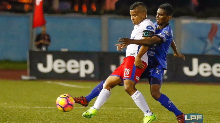 La primera mitad del partido no contó con muchas ocasiones de gol para ninguno de los dos equipos, sin embargo, fueron los colonenses quienes tuvieron la ocasión más clara para marcar, cuando 'Pibe' González remató desde fuera del área al minuto 38 y la pelota se estrelló el horizontal de la portería placina.