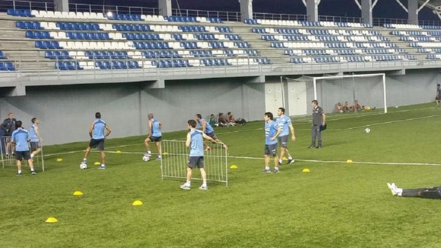 Tras unos minutos de ejercicios aeróbicos liderados por el profesor José Herrera, el plantel hizo unos minutos de fútbol tenis y una serie de pasadas a media velocidad, mientras Celso Otero entrenaba a Martín Silva, informó la Asociación Uruguaya de Fútbol.