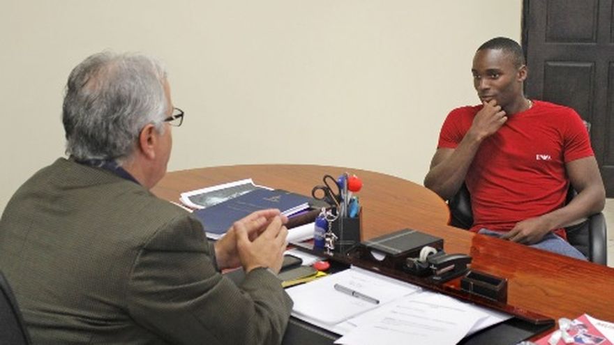 En visita sorpresa el velocista colonense Alonso Edwdard se entrevistó con el Director General de Pandeportes el Lic. Roberto Arango, que con gran admiración lo invito al despacho superior. "Tenia contacto en todo momento en mis competencias en Europa con él (Lic. Roberto Arango) y le dije apenas llegaba a Panamá lo visitaba", fueron las primeras palabras de Edward que acaba de retornar al país para unas cortas vacaciones de recuperación, para luego encaminar su última competencia del año en los Juegos Centroamericanos y del Caribe. Por su parte, el Lic. Arango manifestó su gran admiración, reiterando su apoyo incondicional para el atleta colonense que se siente optimista de lograr el oro para Panamá en los 200 metros planos de los Juegos de Veracruz que serán del 15 al 30 de noviembre próximo. Edward agregó que sacrificará sus vacaciones de este 2014 después de una temporada exigente, por la obtención del "Oro" en Veracruz lo que definió como; "un sacrificio que vale la pena por mi país", palabras que reafirman el compromiso de la máxima entidad deportiva de Panamá (Pandeportes) de brindar todo el apoyo necesario para la preparación de Alonso. Alonso Edward que viene de triunfar en los 200 metros planos de la Liga Diamante en Europa y la Copa Continental de la Iaaf (Federación Internacional de Atletismo) planea tomar un breve descanso y posteriormente culminar su preparación rumbo a los Juegos Centroamericanos y del Caribe de Veracruz, México en territorio panameño. TEXTO Y FOTO: Pandeportes
