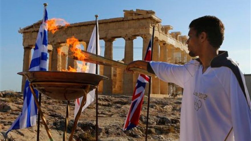 Una lluvia torrencial en Atenas no apagó el entusiasmo nacional ni la llama olímpica. La antorcha fue encendida frente al Partenón y crepitaba el jueves, horas antes de la prevista entrega a los organizadores de los Juegos Olímpicos para iniciar su viaje a Londres. Aunque las olimpiadas comienzan el 27 de julio, la posesión de la llama tradicional tiene un significado especial para los organizadores. "Una vez que se enciende la llama, para todo propósito comienzan los Juegos", dijo a la prensa en Atenas Sebastian Coe, ex atleta olímpico y director del comité organizador. "Este es realmente el comienzo del viaje", agregó. "Creo que la gente reconoce que ahora no hay marcha atrás". La llama fue encendida la semana pasada en el templo períptero de Hera en Olimpia, el Hereo, y ha hecho un recorrido por Grecia en relevos. Gran parte del centro de Atenas estaba cerrado al tránsito el jueves por la tarde en preparativo para la cesión tradicional. El astro del fútbol David Beckham encabeza la lista de celebridades que asisten a la ceremonia a la puesta del sol. También estarán la princesa Ana y el alcalde Boris Johnson, famoso por su apariencia desprolija, que para la ocasión se recortó sus mechones de cabello rubio casi blanco. "Los ojos del mundo están enfocados en Londres", afirmó Johnson. La cesión de la llama olímpica tiene un significado particular para Grecia en estos momentos de incertidumbre política y penuria económica. Los griegos se empeñan en aclarar que la justa olímpica, con toda su grandeza, no fue ni con mucho el único concepto de su pueblo. Dominique Molin, una ex profesora de francés de 52 años, fue a ver a la princesa Ana en un centro que emplea caballos para ayudar a los niños discapacitados. Molin recordó que Europa atesoró muchas ideas promovidas por los antiguos griegos, como la democracia, además del arte y la cultura. Y, aun con las dificultades actuales, un 80% de los griegos consultados en una reciente votación declararon que querían permanecer en la eurozona de 17 naciones. "Pertenecemos a Europa", enfatizó Molin. "Queremos formar parte de ella". Agregó que el trayecto de la antorcha por medio de relevos contribuía a mejorar la deteriorada imagen de la Grecia actual. "Demuestra que hay cosas que están funcionando", afirmó. La llama viajará por aire el viernes —con su propio asiento y agente de seguridad— en el vuelo 2012 de British Airways, un Airbus pintado de oro. La llama llegará a una estación de la aviación naval en Cornwall. Una vez en Gran Bretaña, iniciará el sábado su trayecto de 70 días que abarcará todos los confines de la nación, incluso el misterioso conjunto megalítico de Stonehenge. El paso de la llama también conlleva su propio misterio. Todavía no se ha revelado quién será su último portador. Pero hay alguien a quien se puede borrar de la lista de posibles candidatos: el mismo Coe, ganador de oro olímpico, ha dicho que no será él.