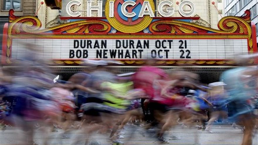 El keniano Moses Mosop fijó el domingo un récord al ganar el maratón de Chicago y la rusa Liliya Shobukhova se llevó el título entre las mujeres para convertirse en la primera tricampeona de la prueba. La carrera, sin embargo, terminó empañada por la muerte de un atleta de 35 años, que se derrumbó a 500 metros de la llegada y fue declarado muerto en el hospital Mercy, a cuatro años del fallecimiento en la prueba de un corredor con un problema cardíaco. La temperatura era de 17 grados centígrados (64 Fahrenheit) y se elevó hasta cerca de 26 (80) en la tarde. Fue la cuarta vez en las últimas cinco ediciones que el día estuvo más caluroso de lo normal para esta época del otoño boreal. Mosop terminó en 2 horas, 5 minutos y 37 segundos para romper el récord de Sammy Wanjiru por cuatro segundos. Se ganó 50.000 dólares adicionales además del premio de 100.000 para el ganador. Lo siguieron sus compatriotas Wesley Korir (2:06:16) y Bernard Kipyego (2:06:29), el etíope Bekana Daba (2:07:59) y el estadounidense Ryan Hall (2:08:04). Shobukhova también ganó con facilidad, en un tiempo de 2:18:20. Es la primera atleta, hombre o mujer, en ganar tres veces en Chicago. Las autoridades se negaron a identificar al atleta que murió, oriundo de Carolina del Norte. Dijeron que los médicos lograron que su corazón volviera a latir al asistirlo, pero que falleció 1 hora y 45 minutos después. "Extendemos nuestras condolencias y pensamientos y plegarias a la familia", dijo la directora de la carrera Carey Pinkowski. La oficina forense del Condado de Cook anunció que se hará una autopsia el lunes. El atleta recibió atención inmediata de paramédicos y doctores de emergencias que estaban en la cercanía cuando cayó al suelo, dijo el director médico de la prueba, George Chiampas. En la edición de 2007, Chad Schieber, un policía de 35 años, murió y cientos de atletas se desmayaron o vomitaron en un fuerte calor. La autopsia mostró que Schieber murió por un problema cardíaco y que no había evidencia de que se hubiera deshidratado. Tras esa muerte, los organizadores mejoraron la comunicación entre los competidores y las diversas autoridades que participan del operativo. También incrementaron los puntos de entrega de agua y de asistencia médica.