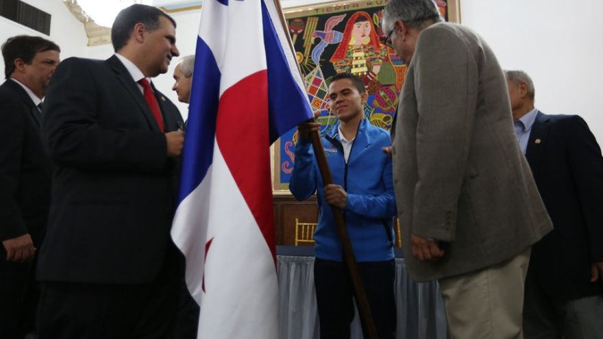Al hacer entrega de la Bandera Nacional al atleta Kevin Espinosa, el ministro de la presidencia Álvaro Alemán exhortó a los deportistas que representarán al país “a dejar en alto el nombre de Panamá y hacerlo dignamente como siempre lo han hecho y les dejó claro que cuentan con él apoyo total del gobierno”.