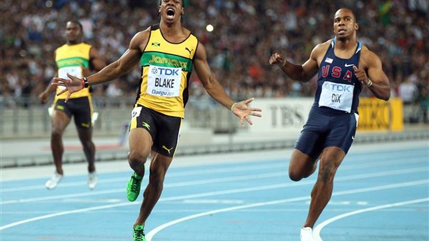 El campeón mundial de los 100 metros llanos, Yohan Blake, tuvo el segundo mejor tiempo del año el miércoles al ganar el torneo por invitación de las Islas Caimán en 9.84 segundos. Sólo Usain Bolt —compañero de entrenamiento de Blake en su Jamaica natal— tuvo un tiempo mejor, al ganar en Kingston en 9.82 segundos el sábado pasado. Blake ganó los 100 metros en el campeonato mundial el año pasado tras la descalificación de Bolt por partida en falso. Los dos no competirán entre ellos hasta las clasificaciones olímpicas de Jamaica a fines de junio. Blake el miércoles venció al también jamaiquino Michael Frater, quien tuvo una marca de 10.05 segundos. Keston Bledman de Trinidad y Tobago terminó tercero en 10.06. En los 100 metros mujeres, la estadounidense Carmelita Jeter, campeona mundial, ganó en 11.04 segundos, superando por 9 centésimas a Jeneba Tarmoh.