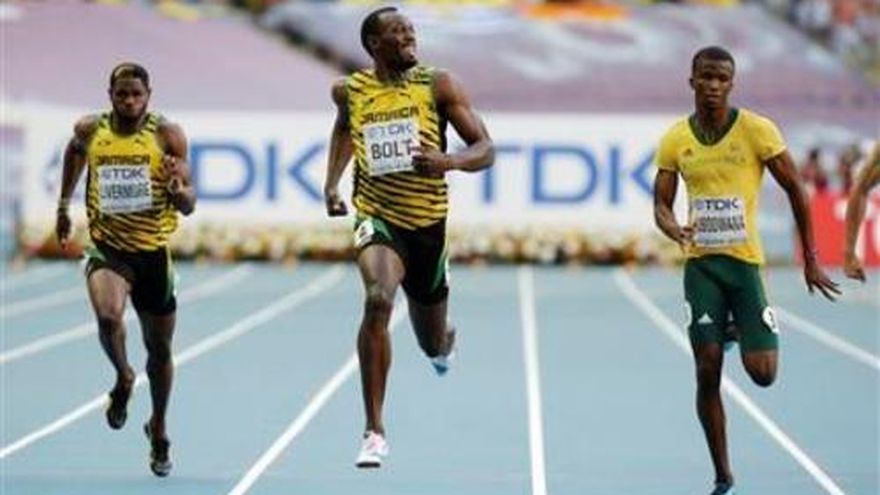 Cuidándose de un dolor en el pie derecho, Usain Bolt avanzó el viernes sin complicaciones a la final de los 200 metros y sigue su marcha por conquistar una segunda medalla de oro en este Mundial de atletismo. Bolt ganó su serie de semifinales con 20.12 segundos, aunque en los últimos metros el astro jamaiquino se vio exigido ante el avance peligroso del sudafricano Anaso Jobodwana. Tras ganar el domingo los 100 metros, Bolt acusó una molestia en el pie derecho. Pero no evidenció dificultades al dar sus zancadas sobre el tartán azul del estadio Luzhniki. En Moscú, Bolt intenta ganar otros dos títulos mundiales: los 200 y el relevo 4x100. Si lo concreta, se unirá a Carl Lewis y Michael Johnson dentro de un selecto club de atletas que han ganado ocho medallas de oro en esta justa. La incógnita es ver si la fatiga mina sus ambiciones. "Recibí tratamiento en los últimos cuatro (días), mucho tratamiento. Ahora mismo me siento bien", dijo Bolt tras la semifinal. El más rápido de la ronda fue el estadounidense Curtis Mitchell con 19.77. Será el único de su país en la final, en la que intervendrán otro par de jamaiquinos, Nickel Ashmeade y Warren Weir.