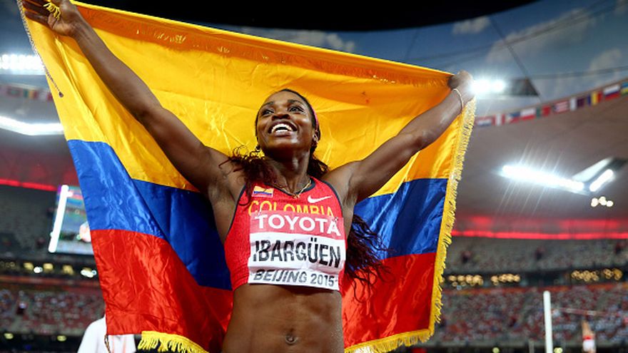 BEIJING (AP) -- Caterine Ibargüen ganó el lunes la final del tripe salto en el Mundial de Atletismo de Beijing y revalidó así su corona en la modalidad, a la vez que dio a Colombia su primera medalla de oro en el certamen, y también la primera presea para un país sudamericano.